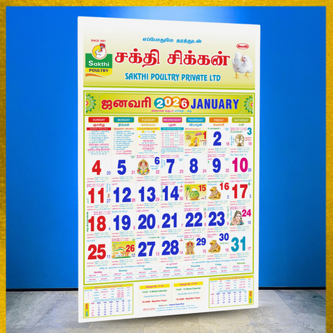 Karthikaa Calendars offers high-quality office Tamil and English monthly printed calendars in bulk supplies across India. A variety of designs to choose from, especially daily Tamil panchangam calendars for details and timings.
